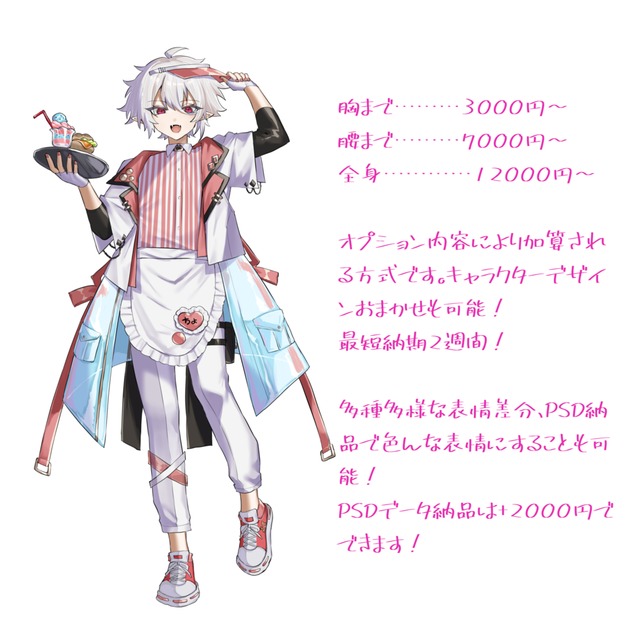 毎回早くにレスポンスを下さり、細かい修正にも対応していただきました!!今回は素晴らしい立ち絵をありがとうございました!!!!!