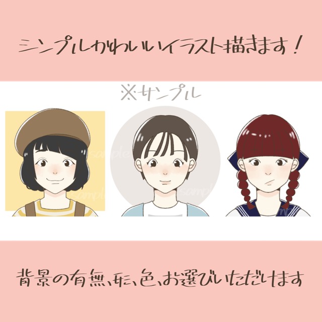 イラストは全て肩から上の正面で、背景は単色となります。