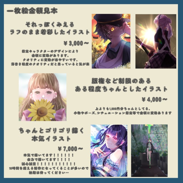 (戦闘、ライブなど。通常₊ポーズ差分の場合は4,000円~)