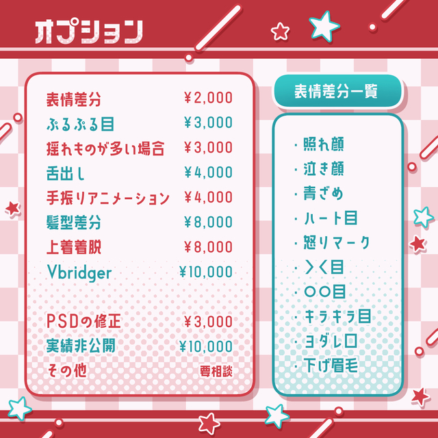 表情差分 2000円
