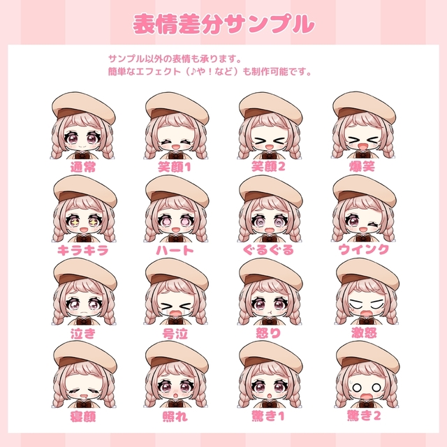 ・表情、エフェクト:表情3種、各表情のエフェクト有/無