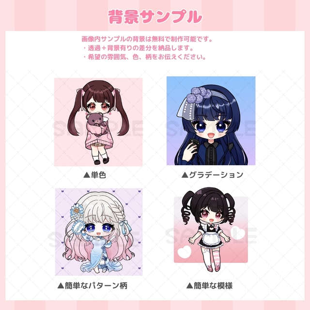 ・背景…透過+簡易背景1つ(指定が無い場合透過のみ)