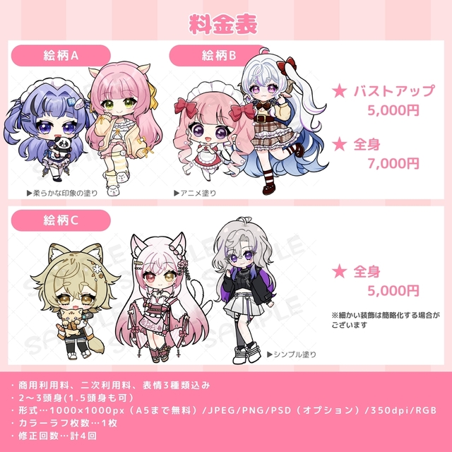 バストアップ:5,000円/全身:7,000円