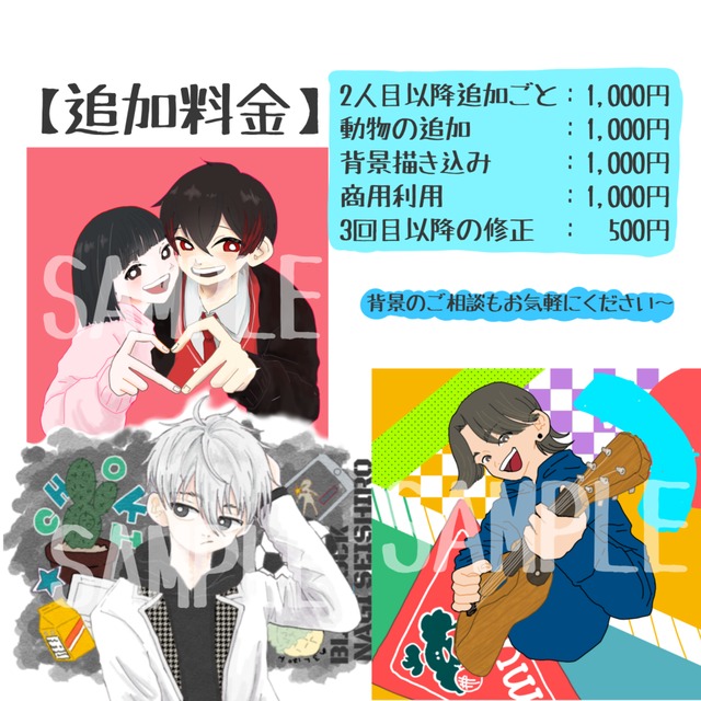 ・3回目以降の修正:500円(大きな変更の場合のみいただきます。)※お支払いはチップにてお願いしております。