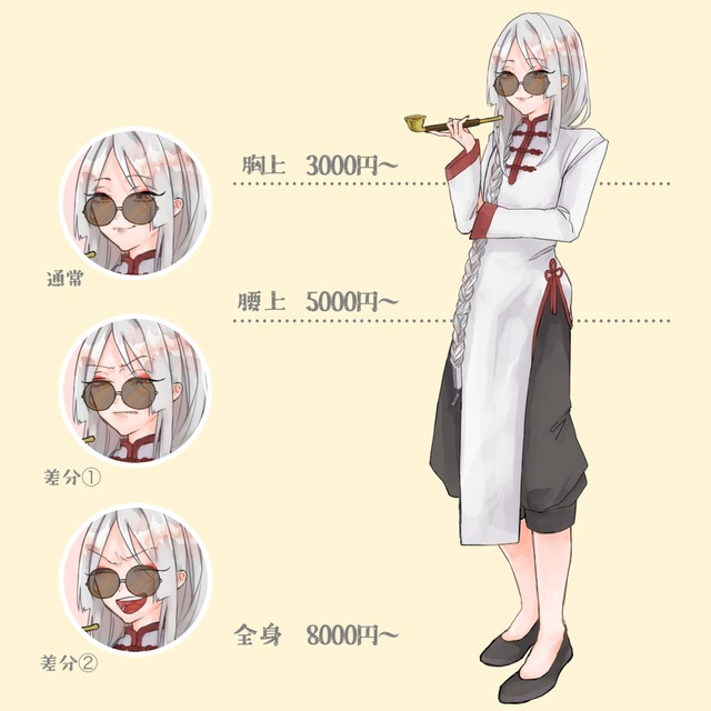・腰上、全身の制作に限り、デフォルト価格で表情差分が1つ付いてきます。(表情は要相談)