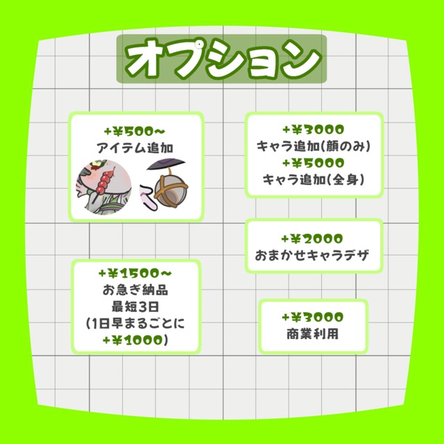 ■キャラ追加_一体につき[顔のみ]3000円 [全身]5000円 (追加アイテム有_+500円~)