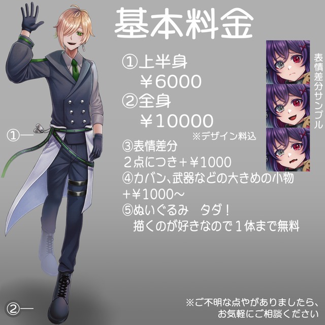 全身立ち絵を1枚描いて頂きました!