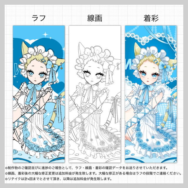 ご購入→ラフ→線画→着彩→納品