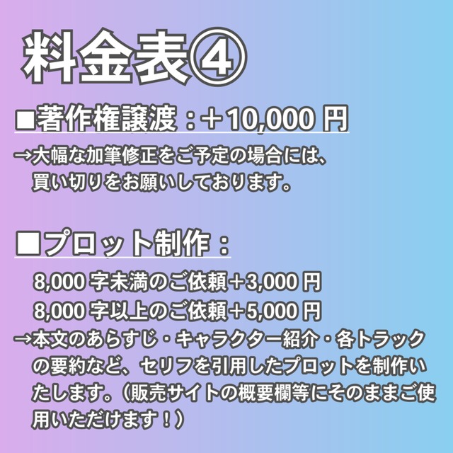 クオリティの高い台本を執筆してくださるライター様です。引き続き、円滑な関係を継続できればと存じます。