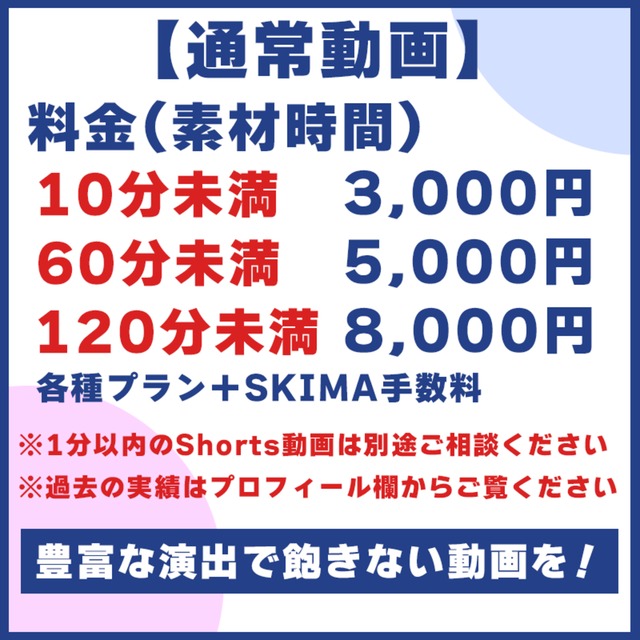 (Shorts動画の場合別途見積もりいたしますのでご相談ください)