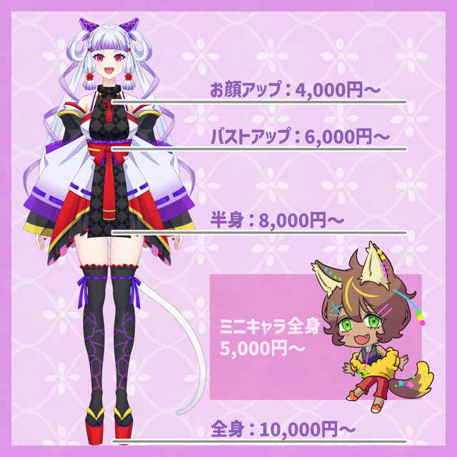 SNSアイコン、立ち絵、一枚絵、Live2Dモデル、SDキャラ等
