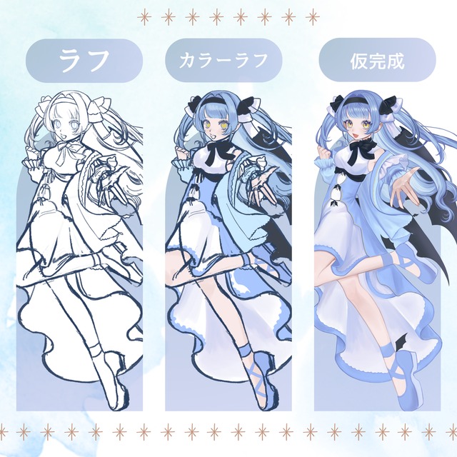 2⃣ ラフ→カラーラフ→最終納品。最大3回修正可能です!