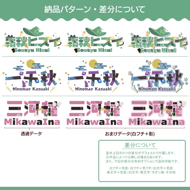 配信画面・グッズ・サムネイル・SNS・パッケージなど、様々な用途に合わせてご使用いただけます。