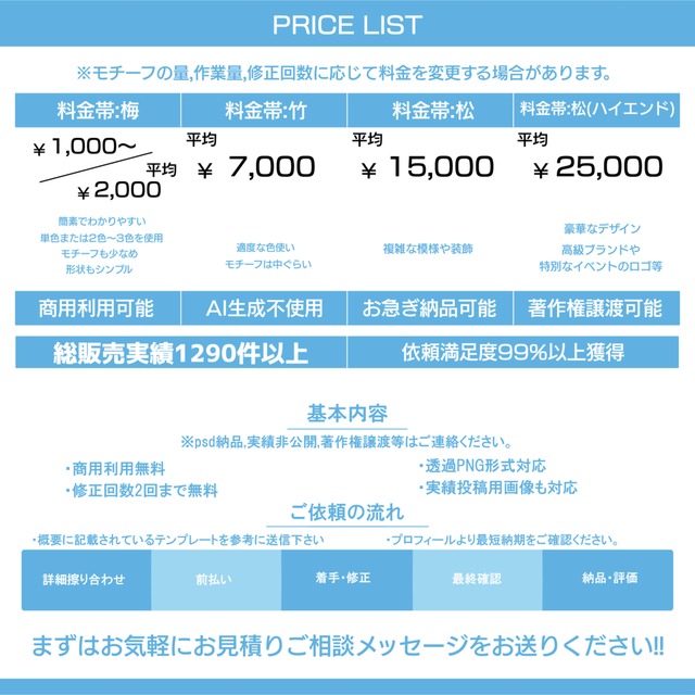 ・制作させていただいたデザインはforiio等のポートフォリオサイトやX等の実績、他の依頼サイト等のコミッションに掲載させていただく場合がございます。