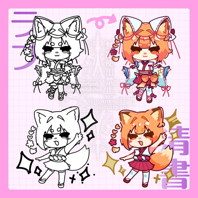 ・表情差分や持ち物追加などのオプションが多数ある場合は、+1~3日ほどいただく場合があります。