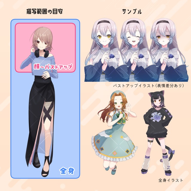 ●イラストの種類〔通常等身/ミニキャラ/Live2D用パーツ分けイラスト〕
