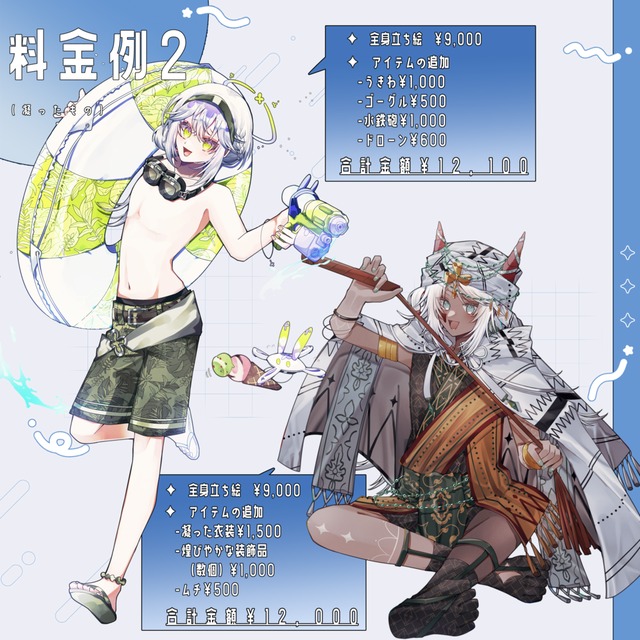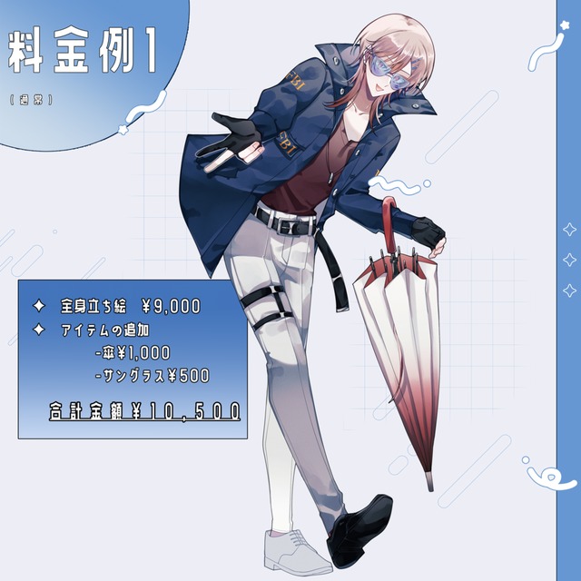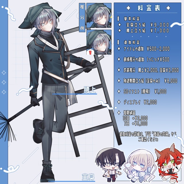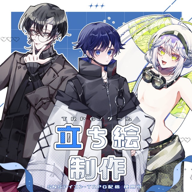 TRPGの立ち絵制作をお願いさせて頂きました。当方の拙いデザイン画から、こちらの希望を細かく汲み取った素敵な立ち絵を描いて頂き、とても満足しております。セッションが楽しみです!大切に使わせて頂きます。