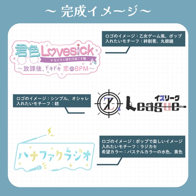 同人誌や、ゲームタイトル、コンカフェ等の使用もお気軽にご相談下さい🙌