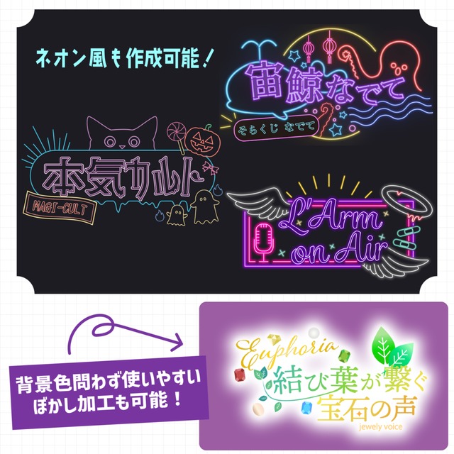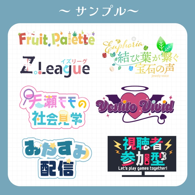 主にVtuber様やVライバー様、活動者の方を対象としたネームロゴ、配信タイトルロゴを制作いたします。