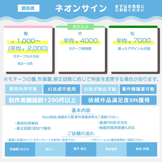 ※AIイラストの生成は一切依頼では実施していません。その他依頼受注不可能なものを強制させて行わせる行為を行う場合はその方に対しての依頼受注を禁じる場合がございます。