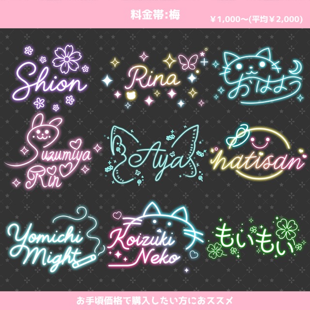 ・梅:1,000円〜(シンプル/文字のみ 等)