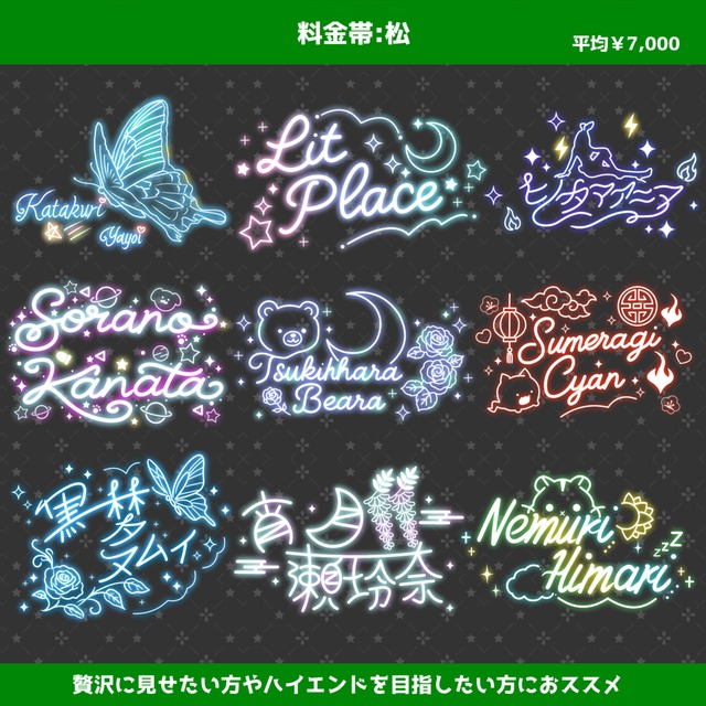 ・松:平均 7,000円(モチーフ描き込み・アニメ調等)
