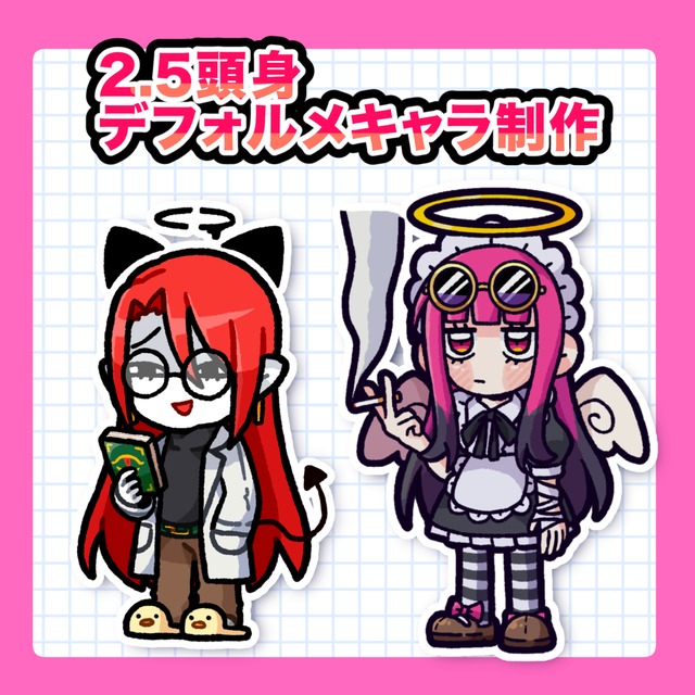 • 2〜2.5頭身のデフォルメキャラのイラストを描きます!
