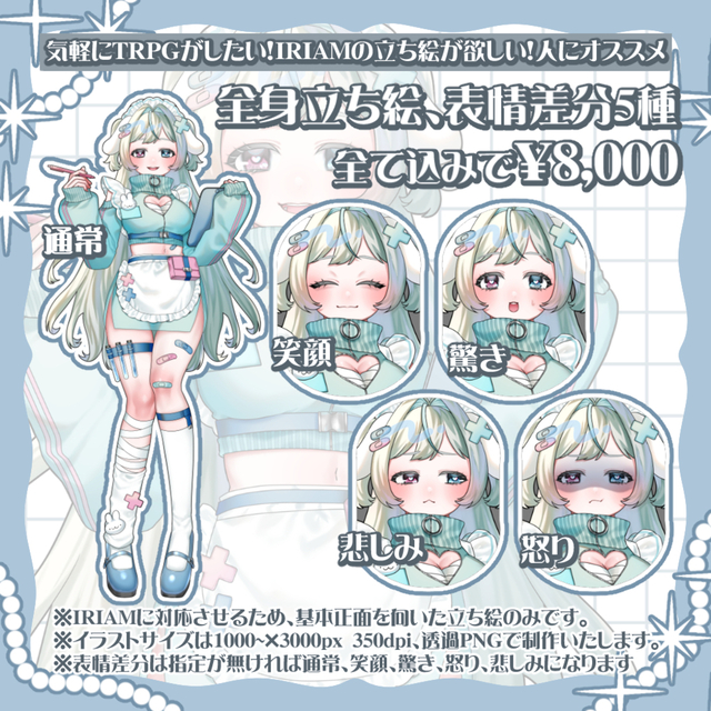 リピートの依頼ですが、初めてTRPG用の立ち絵を依頼させて頂きました!