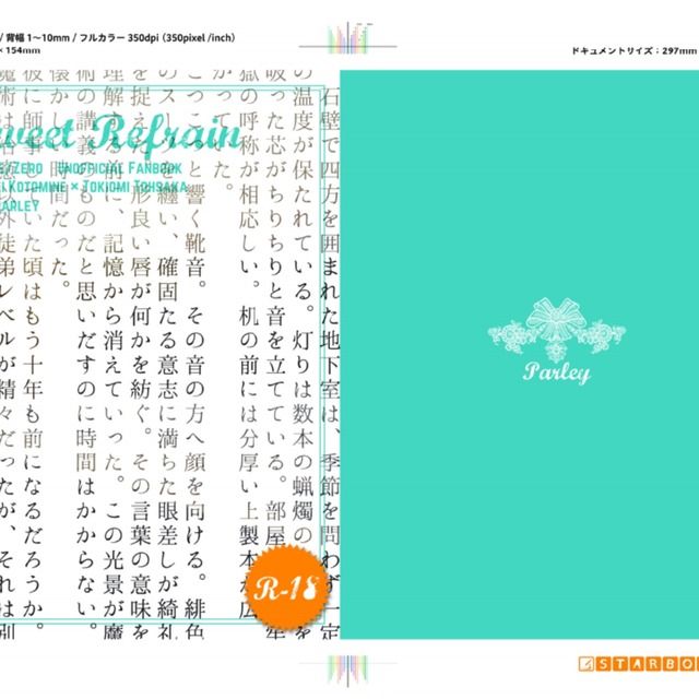 こちらのふわっとした曖昧な説明で、ものすごくかっこいいスタイリッシュな表紙を作っていただきました!!色もタイトル配置もものすごく格好いいです!!また機会ありましたら是非よろしくお願いします!!
