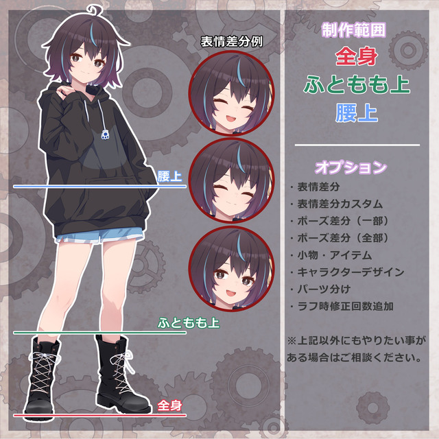※複雑なデザインの服装やポーズ、小物がある場合追加料金が発生する場合があります。