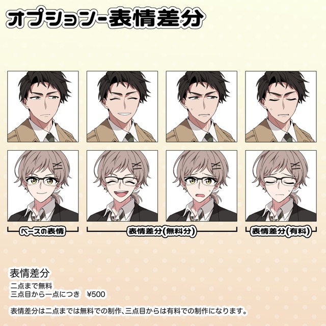 立ち絵の表情差分を依頼させていただきました。急なお願いだったにもかかわらず快くお引きうけくださり、迅速にご対応いただきました。本当にありがとうございました!