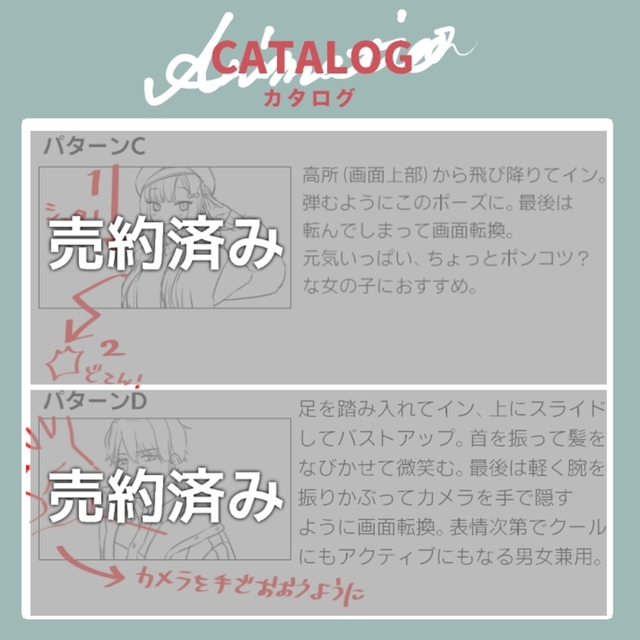 ・動きを使い回すことで価格を抑えたプランのため、動きの変更はできません。表情は変更可能です。