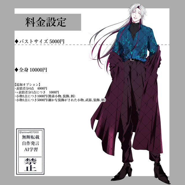 こちらからの希望に加えて、お伝えできていない部分はイメージを噛み砕いてご提案くださり、想像以上の色気あるキャラにしていただいて大変嬉しいです!!