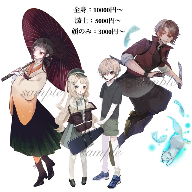 塗りの種類や構図や依頼内容にによって追加料金をいただきます。