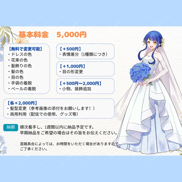 こちらのイメージが曖昧で申し訳なかった部分があったのですが、とても素敵なご提案をしていただき、とても嬉しかったです!とっても映えるイラストを描いていただきました、ありがとうございます!