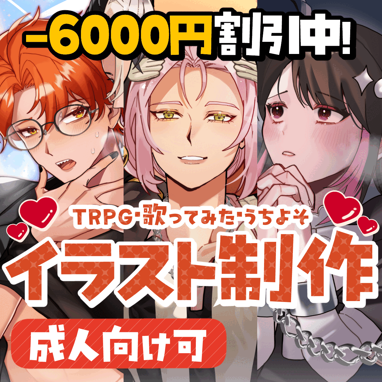 TRPG・歌ってみた・配信用・表紙など幅広く対応可能です。