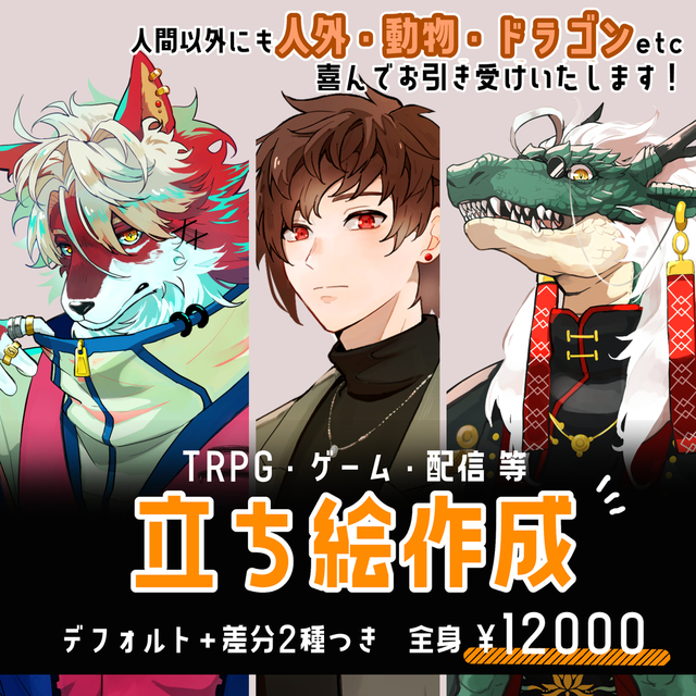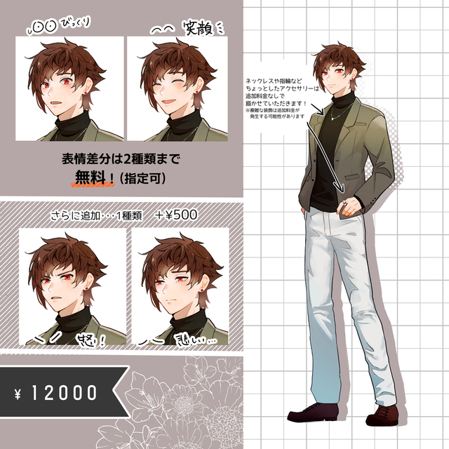 立ち絵2種類を依頼させていただきました。それぞれ表情差分も状態も違うなか、ラフ、そして清書まで素晴らしい素敵なイラストをご提出していただき、また、やり取りもスムーズでありがたい限りでした!機会がありましたらまたご依頼させていただこうと思います!ありがとうございました!🙌