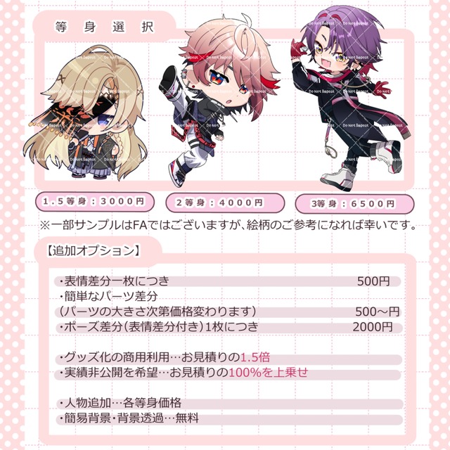 フラスタにつけるパネル用イラストを依頼。まず何よりも終始丁寧な姿勢が素晴らしかったです。いつも真摯に対応してくださり返信も大変スピーディーでした。途中トラブルが発生した際もとても心強かったです。