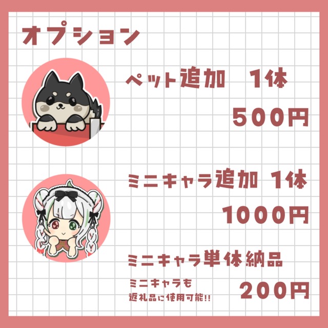 ・ミニキャラ単体納品:+200円