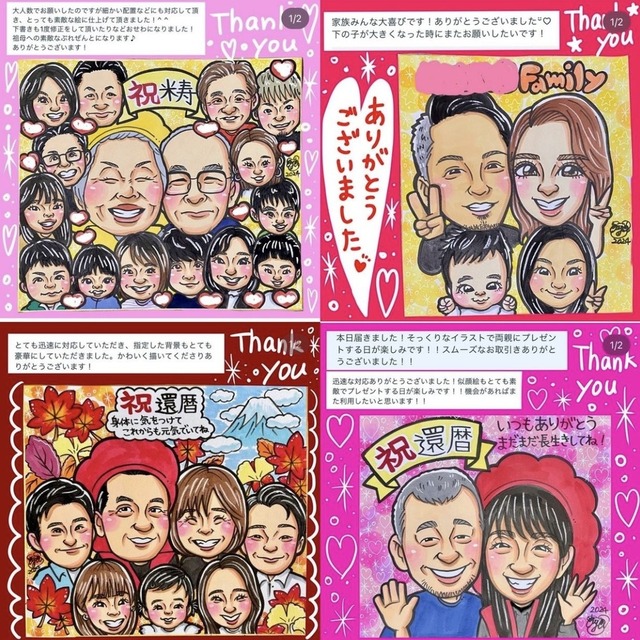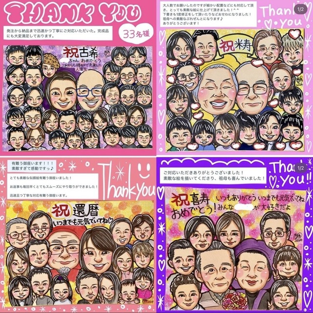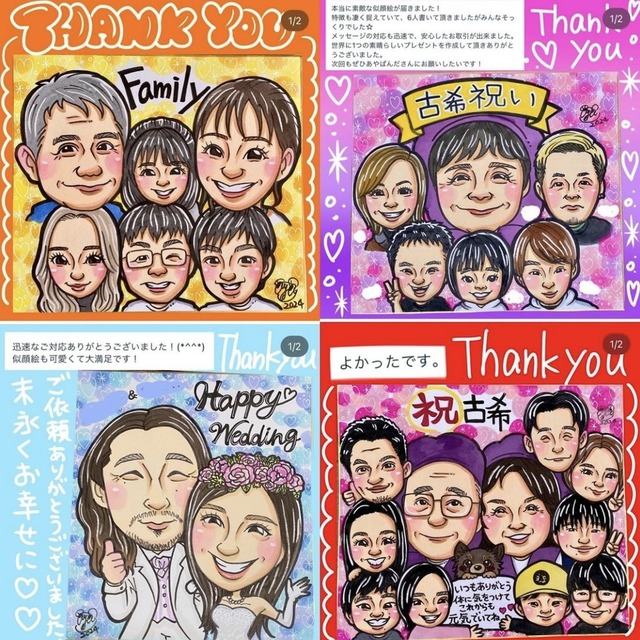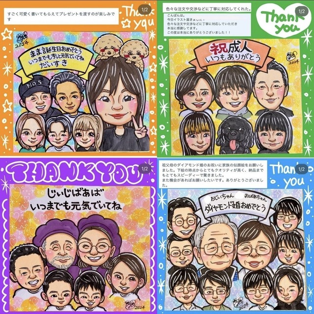 • キラキラ背景の派手可愛い似顔絵