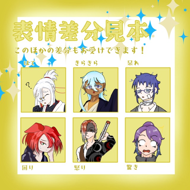 ・汎用表情差分の作成(立ち絵を加工するのではなく、別に差分を作成) +2000円(初回のみ、既に別プランで作成済みの場合必要ありません)