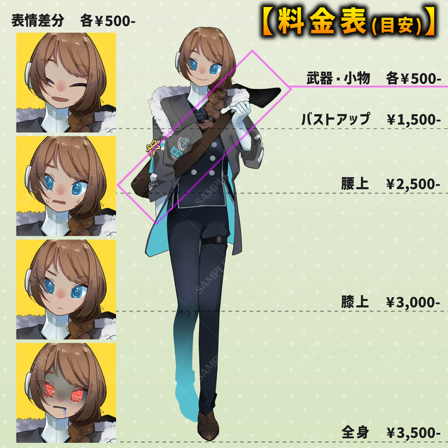 また、イメージ伝えた後からの着手までがとても早くラフから本塗りまでの工程を細かくチェックさせて頂けたりいくつか候補を用意頂きさらにこちらの意見へも柔軟に応えてくれたりとスキルの高さはもちろん完成までワクワクしながら依頼をお願い出来る絵師さんです!