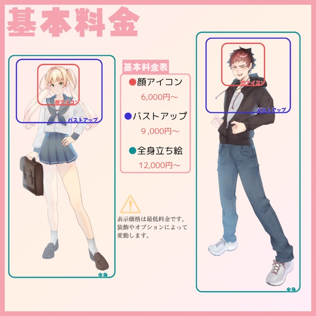 全身立ち絵:12000円