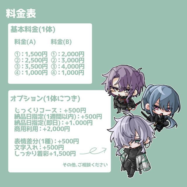 また、複数キャラまとめての依頼も受け付けております※要相談