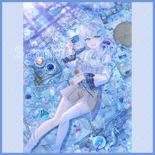 宝石のような輝きと透明感を意識した雰囲気重視で細やかなイラスト。