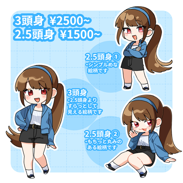 ・備考:(こだわりやNG項目など。デフォルメするにあたり省略されたくないもの、気をつけてほしい特徴など)