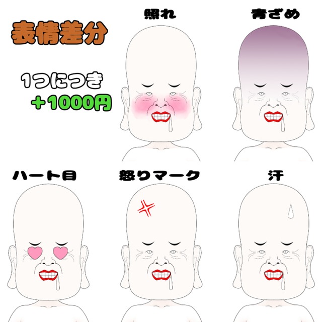 表情差分 照れ 青ざめ 怒りマーク 汗 ハート目 1つにつき+1000円