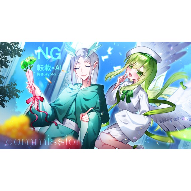 柔らかいタッチと優しく美しい色使いにめちゃくちゃ癒される素敵な作品をありがとうございました✨様々な要望を聞いてくださって、そしてとても素晴らしいイラストを描いて下さりとても感謝しております!!