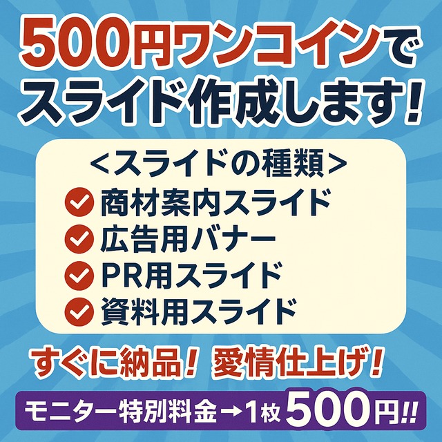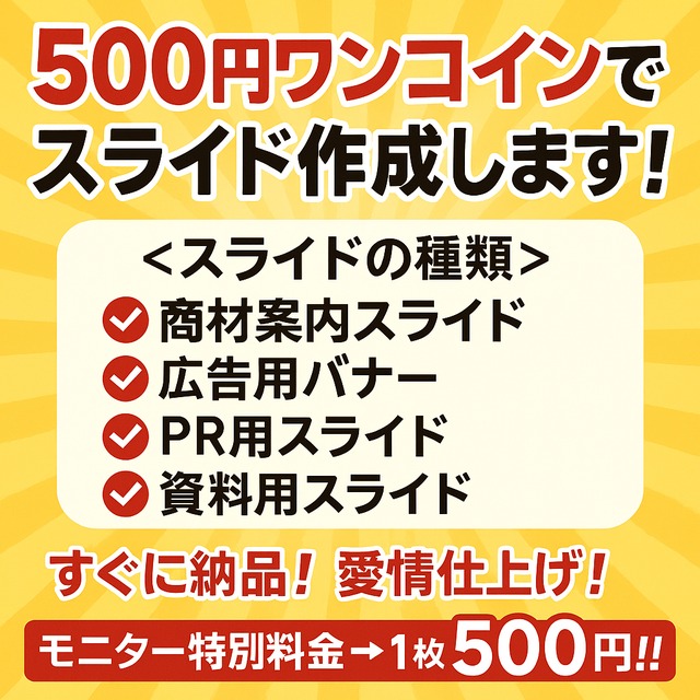 • 500円でスライドを作成します