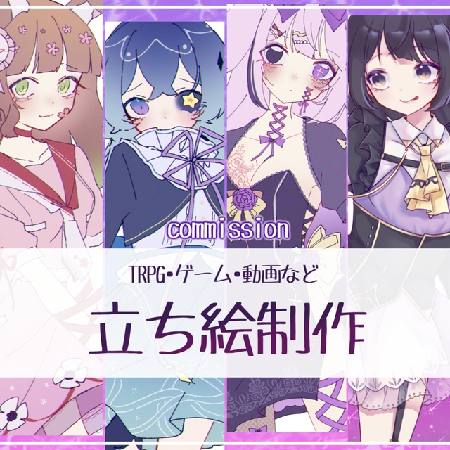 TRPGやゲーム、アイコン、配信等で使用できるキャラクターの立ち絵を制作しております。